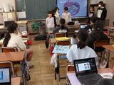 電子黒板を使って、冬を元気に過ごすために、感染症予防のしかたを説明しました。