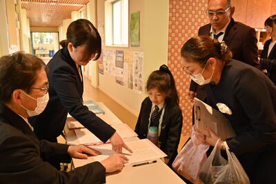教室では、先生の説明を聞き、配られた教科書に名前を書きました。