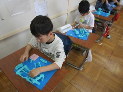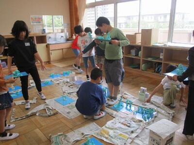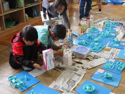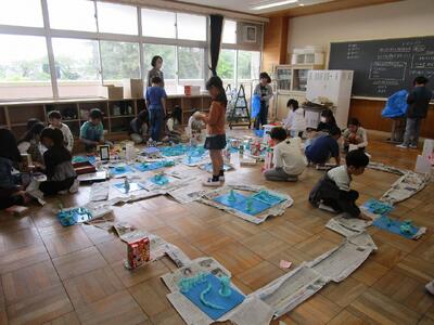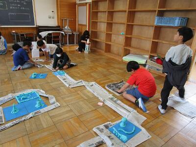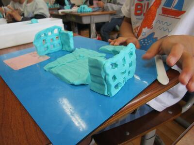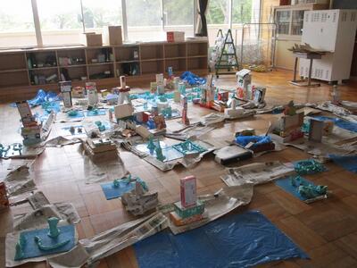 3年生 図工 投稿: 承認者 (13:33) 3年生の図工「まちをつくろう」です。 まず、新聞紙や箱を使って道路や建物を作りました。次に、動物や公園など、「あったらいいな」と思うものを粘土で作り、設置しました。 まちは、どんどん大きくなりました。 Tweet -